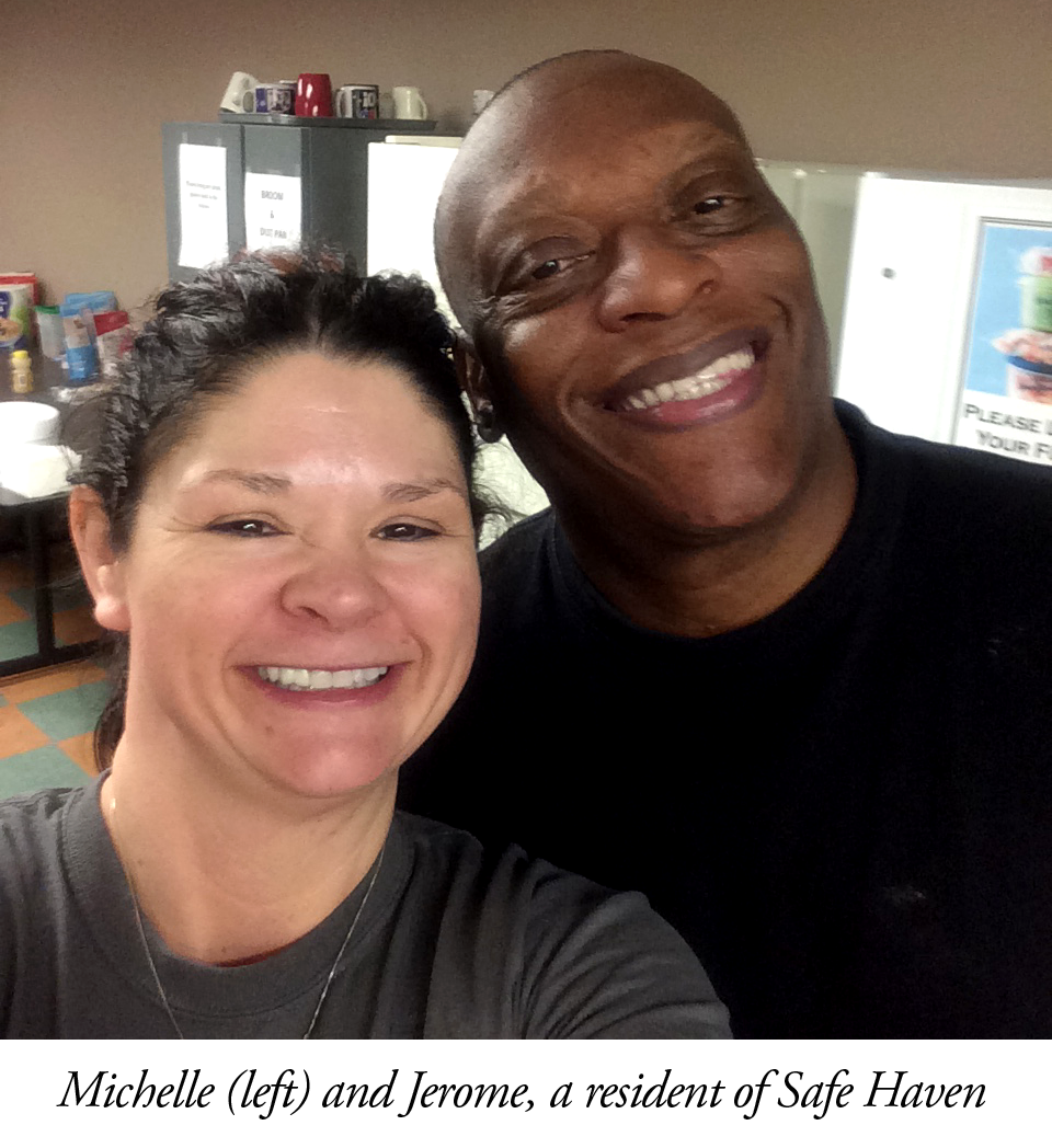 After the long weekend, at work her co-workers were surprised and intrigued when they learned that she spent her day caring for the homeless veterans seeking shelter at Safe Haven. Their interest was piqued, and they decided they wanted to volunteer as well. So once a month, they organized a time to go to Safe Haven and cook a meal for all the residents. They started to get to know the residents so well, that their service expanded. Once 2014 came around, Michelle was heading over there at least twice a month, and soon she and her co-workers were collecting donations for the residents as well as cooking for all of them.