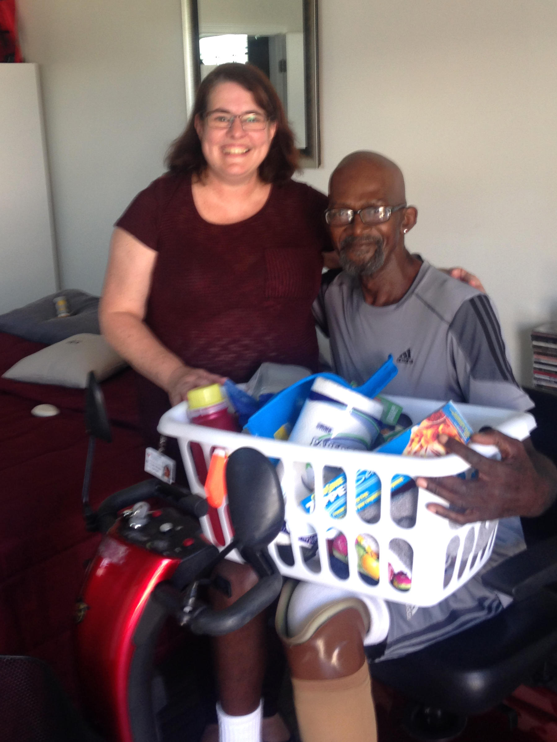 In situations like these, a laundry basket full of cleaning supplies, cooking utensils, toilet paper and paper towels is very helpful, especially since our funding restricts what we can and can not buy for the veterans. “We are only allowed to buy furniture and food for the vets. Our funding does not allow us to buy cleaning supplies such as Windex and laundry detergent for them,” said Nwamaka Onochie, program director of SSVF Indianapolis. “Often we have to rely on donations from others to either purchase or provide those supplies.”