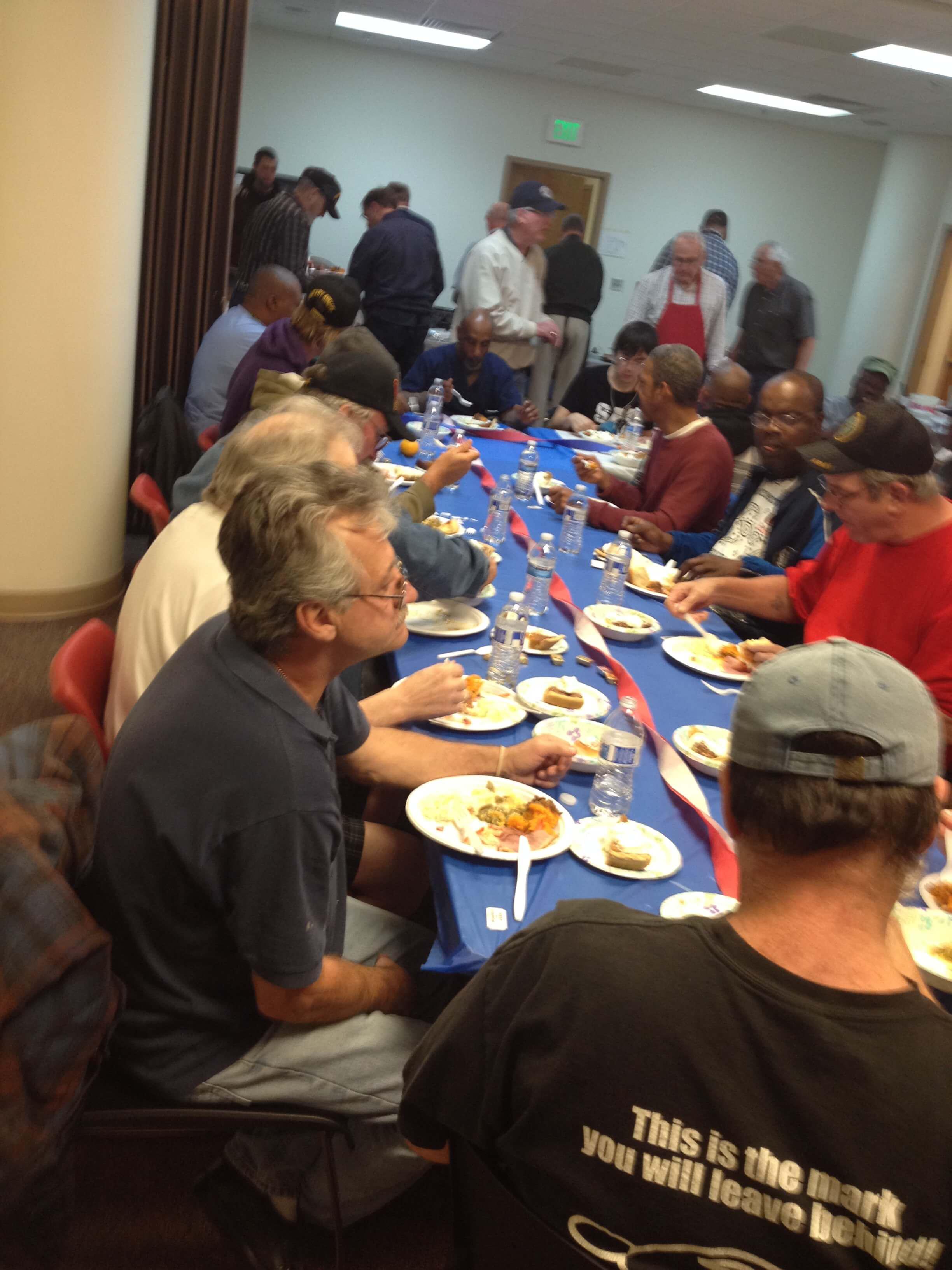 At our transitional housing programs (Brandon Hall, Safe Haven and Liberty Landing) many church or work groups provide occasional dinners for the men and women living there. Some buy 10 pizzas; others prepare a home cooked meal. Some come on a consistent basis every Easter or Thanksgiving; others come by every other year or during random months. It doesn’t have to be for a holiday, the veterans always appreciate the extra attention and delicious food.